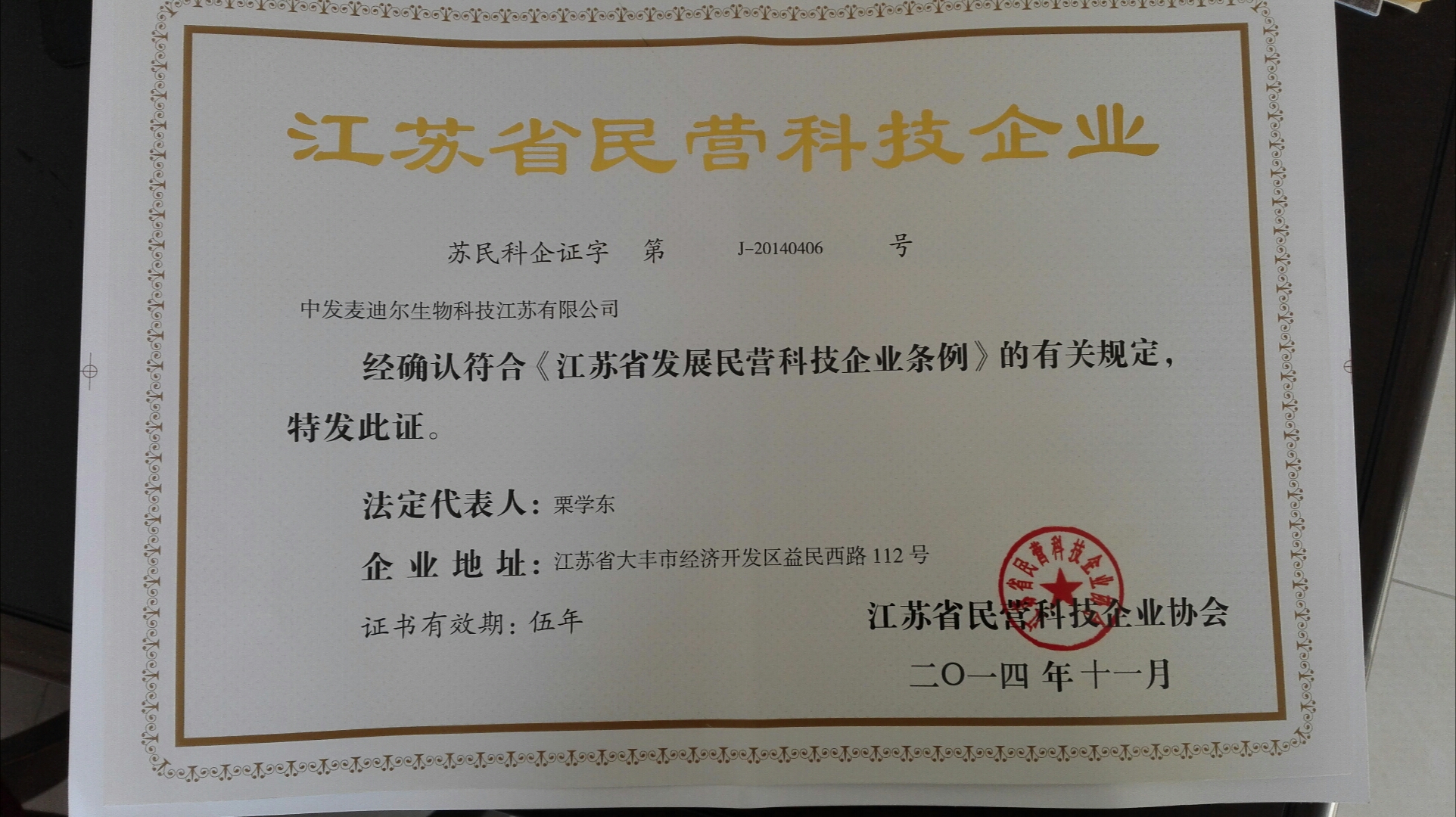 “江苏省民营科技企业”证书 2014年11月公司被江苏民营科技企业协会认定为“江苏省民营科技企业”。……